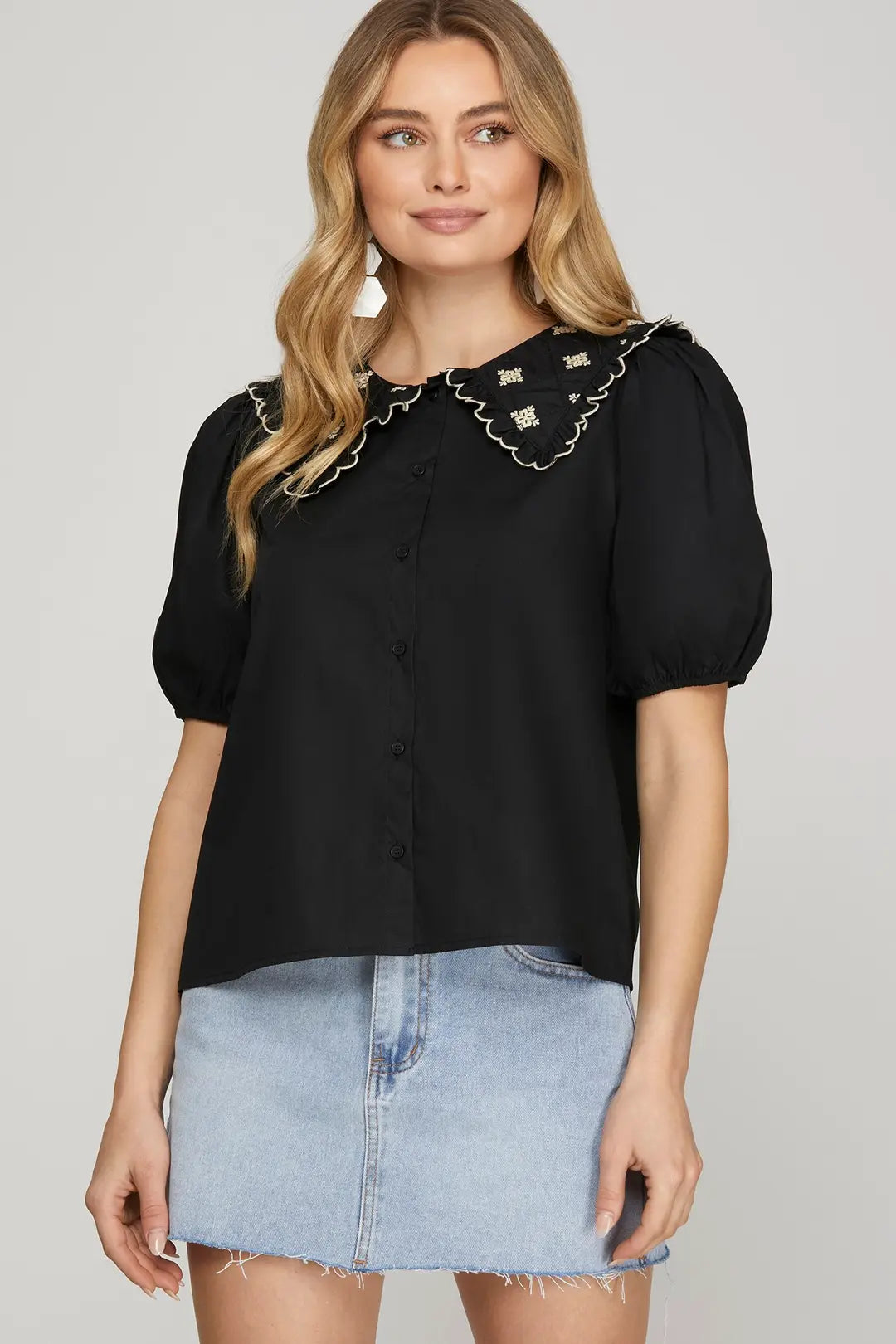 Black Puff Sleeve Peter Pan Collar Blouse